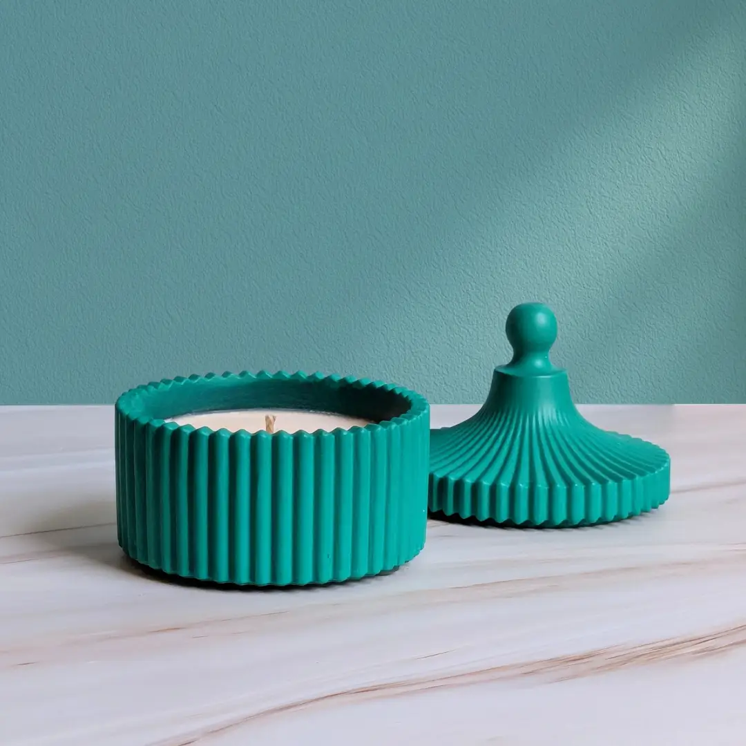 This pot is made from jesmonite, a material that feels naturally smooth and calming to the touch. Each one is handmade by us, so no two pieces are ever exactly the same. The gentle ridged pattern and soft rounded lid give it a cosy, friendly character that feels right at home in any room. Small, simple and full of charm, it adds a quiet beauty wherever you place it.