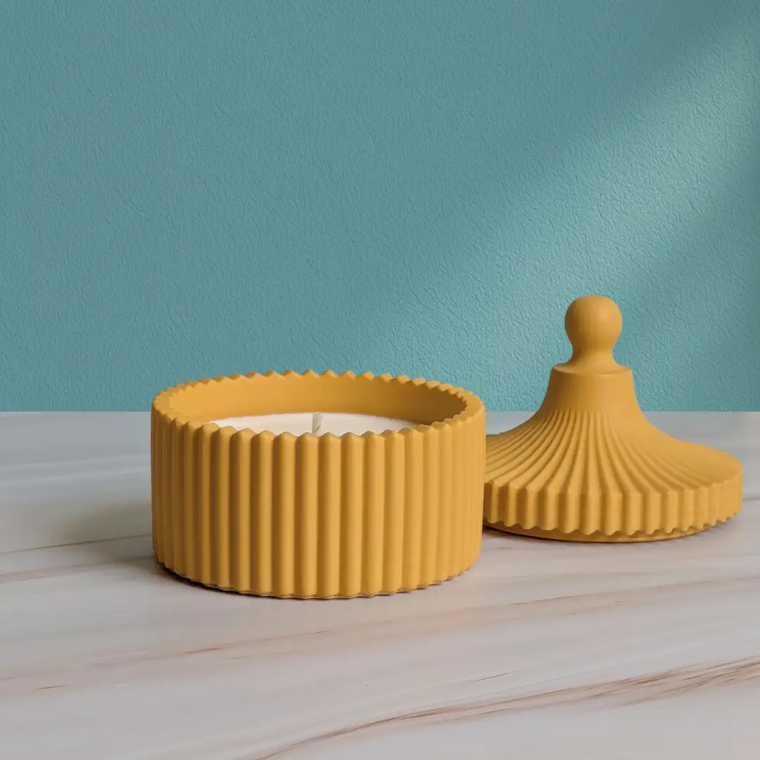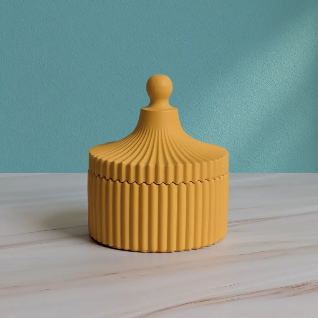 This pot is made from jesmonite, a material that feels naturally smooth and calming to the touch. Each one is handmade by us, so no two pieces are ever exactly the same. The gentle ridged pattern and soft rounded lid give it a cosy, friendly character that feels right at home in any room. Small, simple and full of charm, it adds a quiet beauty wherever you place it.
