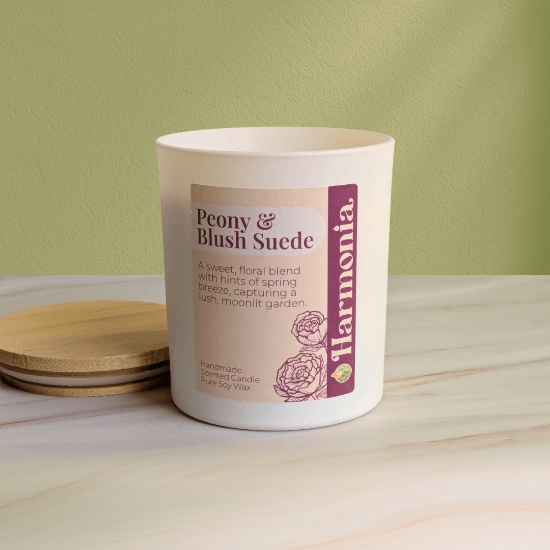 Peony & Blush Suede Whitte Glass Candle