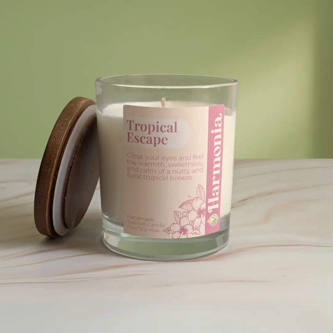 Let Tropical Escape carry you to golden sands and lush gardens, where creamy coconut and tiare flower bloom under a warm breeze. Nutty top notes and soft hawthorn open the journey, leading into a base of sandalwood, vanilla, and velvety tonka that lingers like sun on your skin.