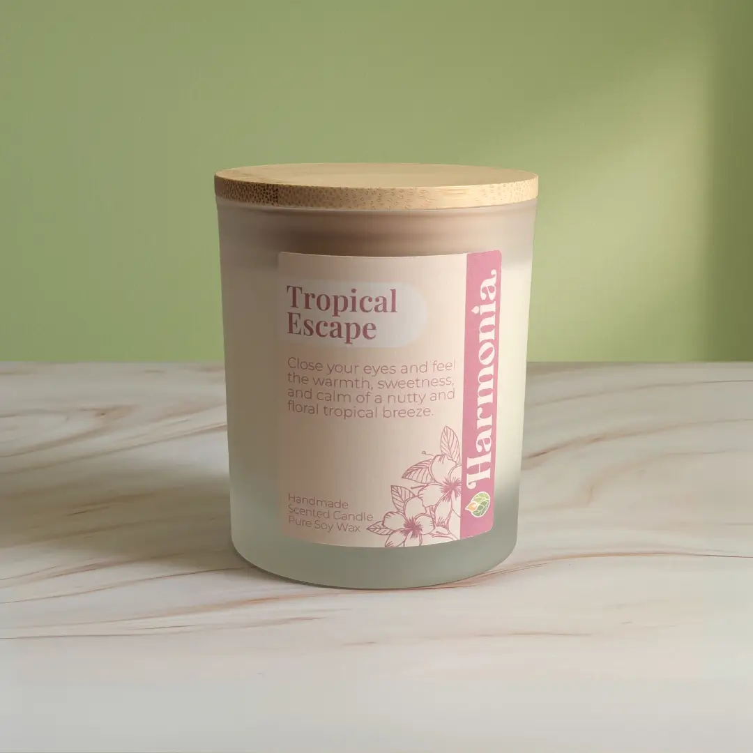 Let Tropical Escape carry you to golden sands and lush gardens, where creamy coconut and tiare flower bloom under a warm breeze. Nutty top notes and soft hawthorn open the journey, leading into a base of sandalwood, vanilla, and velvety tonka that lingers like sun on your skin.